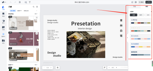 第三步:属性中包括了主题、配色及字体,可以按照自己喜欢的风格去选择。