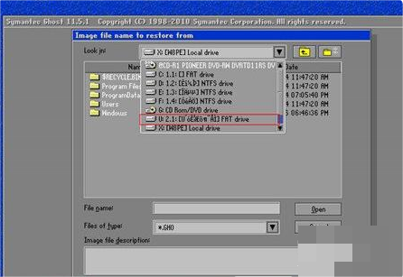 5.指定路径到自己GHO文件所在的目录。选择好文件,就开始还原安装系统了。