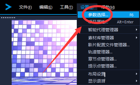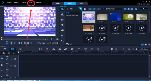 第一步:首先打开“会声会影”软件,点击“设置”菜单。