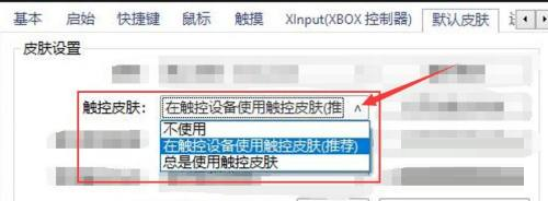 第三步:进入“皮肤设置”项册召排后,在“默认皮肤”项下,点击“触控皮肤”的下拉按钮,在下列项中按需选择一项即可,如图所示。