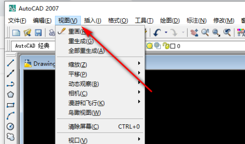 第二步:打开AutoCAD2007后,点击工具栏中的视图。