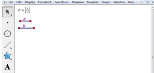 第三步:使用线段工具画固定线段a、b,作为矩形的长和宽。