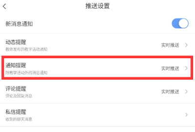 第四步:找到“通知提醒”,将其改为不推送,之后就不会收到除教学活动外的消息通知了。
