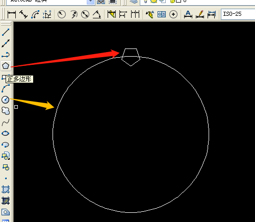 第二步:用圆工具画出一个圆,正多边形工具绘制出一个正五边形。