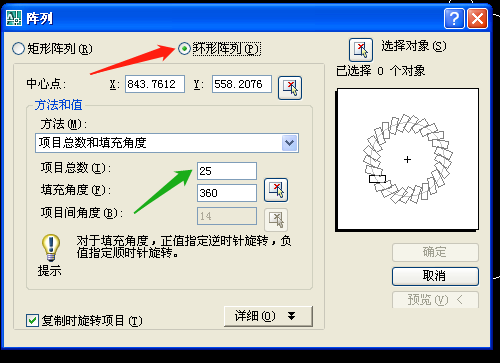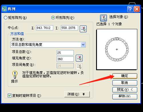 第三步:单击修改工具的阵列工具,对话框中如图设置。