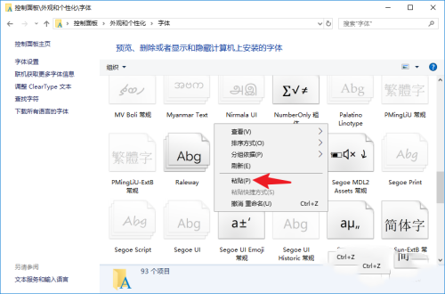 将刚刚复制的方正小标宋简体,粘贴到字体文件夹中。