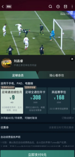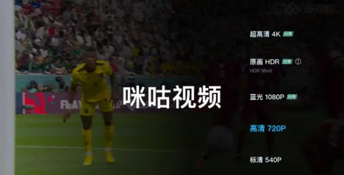咪咕视频:不开会员就有广告(且时间很长)最高仅支持 720p 画质;开通会员后无广告,最高支持 4K HDR 画质(不确定是否有 50/60fps 高帧率)好在这个会员首月仅需 ¥9 且多端多设备通用,而本届世界杯决赛在 12.18 举行,换言之用首月优惠开完,下个月前取消也能覆盖世界杯全程,成本 ¥9 不算离谱