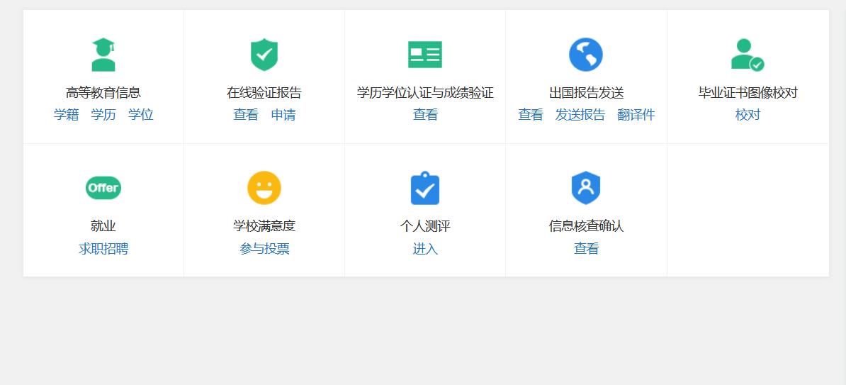 4、选择学历学位认证与成绩验证,便可以得到学历认证报告。