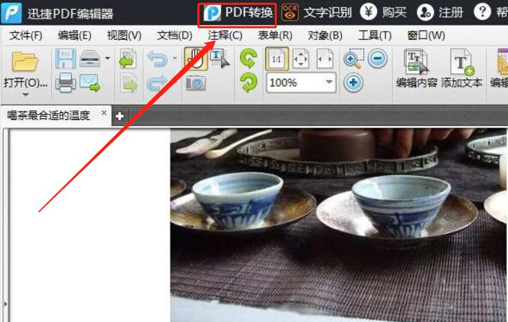 1、在迅捷PDF编辑器中将文件打开。