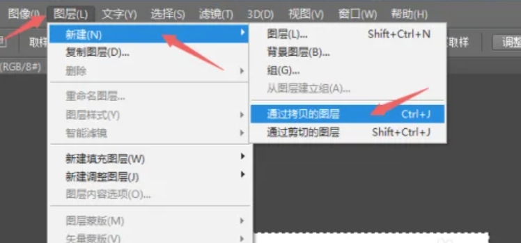 5.在最上面菜单栏点击【图层】选项,再依次点击【新建】——【通过拷贝的图层】