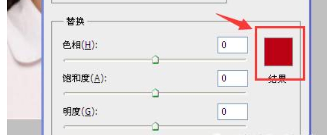 2、在下方的「结果」处点一下,弹出拾色器,选择要换成的背景颜色—蓝色,点击确定。这时你会发现,人物的脸色都变了,没关系,我们在第3步处理。