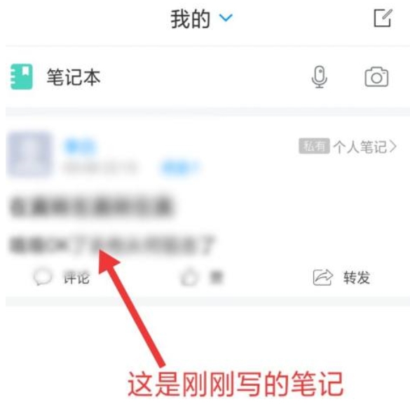 最后自动返回到上一界面,我们可以看到刚刚写的笔记了。