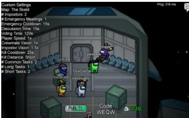 房主需要选择地图、最多伪装者数量、最多玩家数量以及聊天频道,虽然聊天频道设置项是“聊天语种”但实际上不影响发言格式,只是对游戏搜索产生影响。房主可自定游戏规则。游戏一般需要四名玩家可以开局游戏。