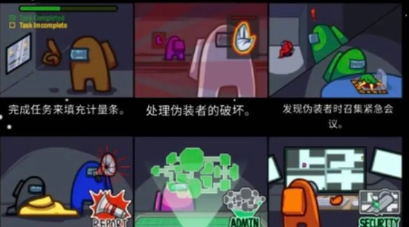 太空船的维修、导航、样本收集等等。完成任务可以使太空船正常运行。每个人的任务都略有不同。宇航员需要一边完成任务,一边观察其他玩家,以找出狼人。