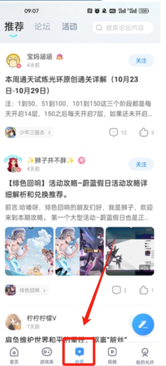 5、点击“社区”,还可以看到各种资讯、攻略,结交好友。