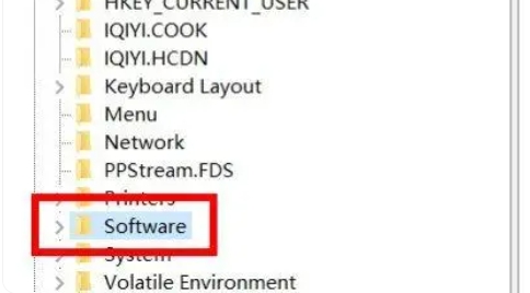在“HKEY_CURRENT_USER”目录下,找到并单击打开“Software”项。