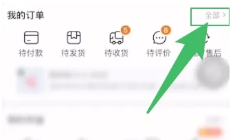 进入订单页面后,您会看到所有的订单记录,点击“全部”选项以查看所有订单。