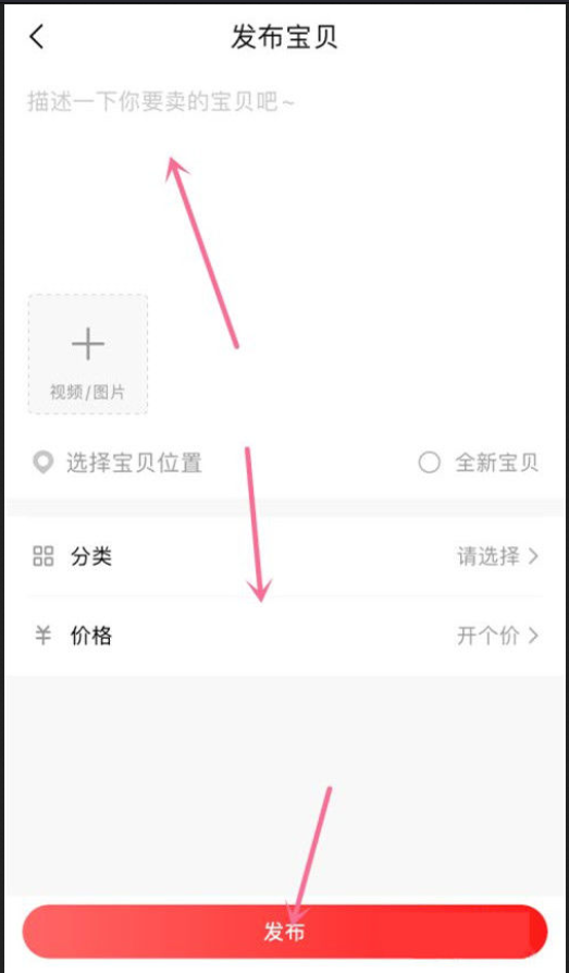 2、选择发布闲置,找到宝贝信息并输入,选择发布即可。