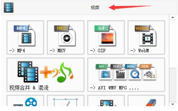 3、在“视频”下方可以看到所有的视频转换模式,这里指的都是将其他格式转换为图示格式。例如箭头所指是将其他视频转换为“MP4”格式(如图所示)。