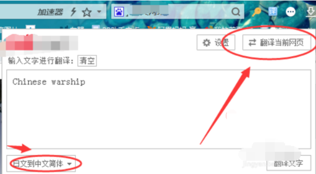 5、选择翻译文字类型,然后单击翻译当前网页搜狗浏览器怎么翻译整个页面