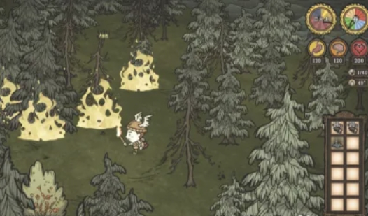 在密林中,你还可以找到蜘蛛巢和猪舍等生物群落。在火势附近,这些生物可能会被烧死,留下烧熟的肉等资源。同时,你也有可能捡到蝴蝶翅膀等其他有价值的物品。
