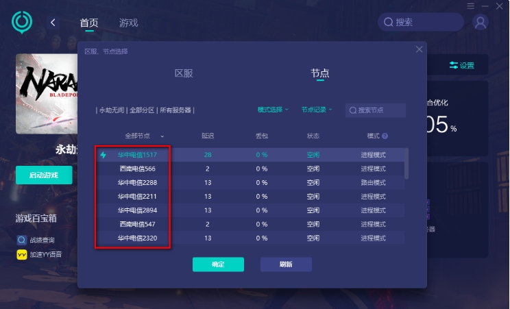 3、根据您的网络情况和游戏需求,选择一个合适的加速节点即可。