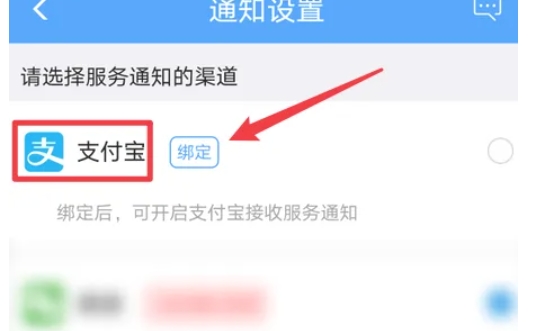 在“通知设置”或相关支付管理页面中,向下滚动或浏览内容,找到“支付宝”绑定选项。点击该选项进入支付宝绑定页面。在支付宝绑定页面,你将看到一个“绑定”按钮或类似选项。点击该按钮以开始绑定过程。