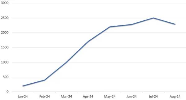 在八月份,Kimi达到了产品运营的顶峰。然而,从数据趋势来看,Kimi的访问量增长速度明显放缓,即将面临自产品推出以来的首个增长停滞期。