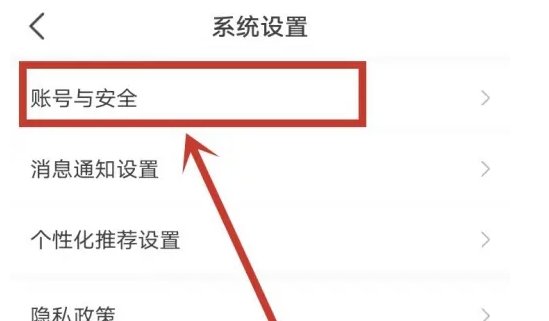在系统设置页面中,找到并点击“账号与安全”选项。