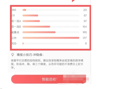 创建成绩成功后,点击“智能填报”功能。系统会根据你的高考成绩、位次、选考科目等信息,利用大数据和独家算法为你智能推荐录取率高的院校和专业。这些推荐结果会按照“冲、稳、保”的梯度形式为你展现,帮助你合理地规划志愿。