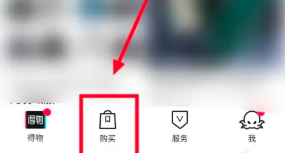 在得物App主界面,点击底部下方的“购买”按钮,进入购买页面。
