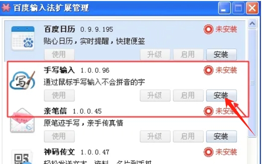 在扩展管理页面中,找到“手写输入”选项,并点击“安装”按钮。此时,会显示一个进度条,表示手写输入插件的安装进度。在其他地方(如非百度输入法的设置界面)可能无法直接看到安装进度条。