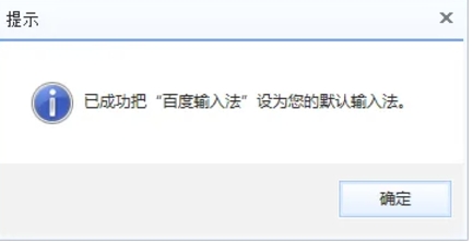 完成上述步骤后,系统可能会弹出一个提示窗口,确认百度输入法已被成功设置为默认输入法。此时,你可以点击“确定”按钮来关闭提示窗口。