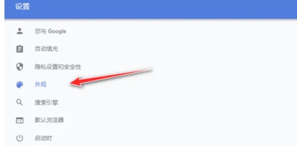 在设置页面的左侧导航栏中,找到并点击“外观”选项。这将会展开与浏览器外观相关的设置选项。