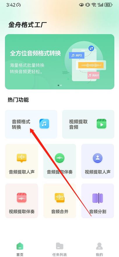 考虑到很多用户需要在手机端实现音频格式转换,那么就来推荐一个好用的手机app——金舟格式工厂
