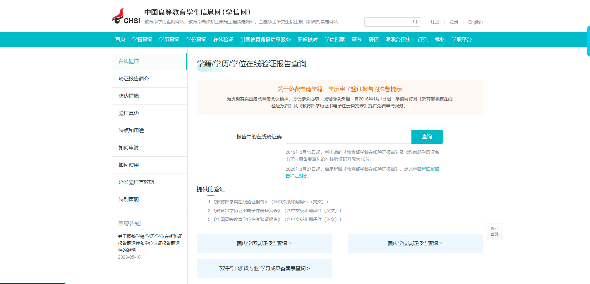 真实性保障:所有数据通过高校学籍学历电子注册制度实时对接,用人单位、海外院校等机构公认其为学历验证 “金标准”。