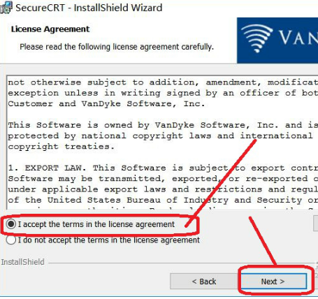 7、选择是否创建SecureCRT的开始菜单文件夹(Create a program group for SecureCRT)和桌面快捷方式(Add a desktop shortcut for SecureCRT),选定后单击下方的“Next”。