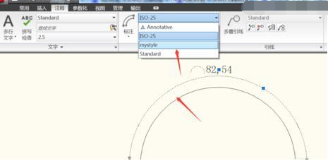 6.然后点击一下弧长标注,然后在样式选择成我们自己新建的。样式就会变化。