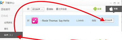 3、点击91助手左侧的“来电铃声”,找到你要设置的铃声,点击鼠标右键选择“设置为来电铃声”,既可以将你喜欢的音乐设置为铃声了。