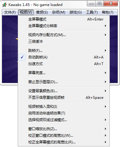 1、首先我们可以在该截图中看到游戏菜单栏处有很多的功能按钮,如:文件、视频、音频、杂项、游戏等。