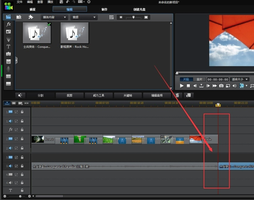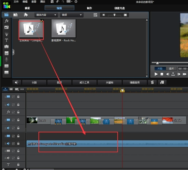 4、导入音乐文件后,将音频文件拖到音轨上。