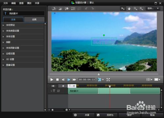 5、编辑完成后,您可以在威力导演(PowerDirector)左侧的文字属性设置中,您可以自行选你要修改的样式。