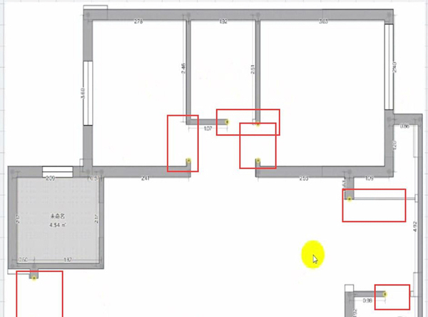 4、有一些没有生成的墙体点击户型界面左上角画墙工具补上(如图红框位置),画上墙体之后在左边选择门窗模型拖到墙上装饰即可