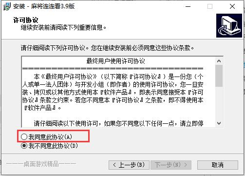 2、进入麻将连连看安装协议界面,点击【我同意】然后点击【下一步】。