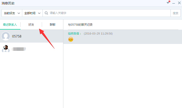 3、在易信电脑版的好友窗口当中可以看到聊天记录,点击消息历史