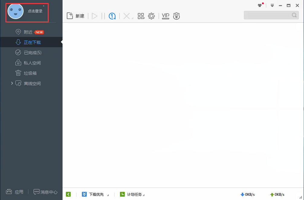 1、双击桌面迅雷极速版桌面快捷方式,打开软件,打开软件后 进入主界面,您可以点击左侧顶部的的图标登陆软件。