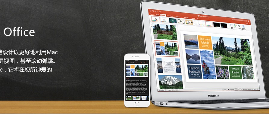 Office 2016 for Mac 从头开始设计以更好地利用Mac特性,包括Retina显示屏、全屏视图,甚至滚动弹跳。这就是您所了解且信赖的Office,它将在您所钟爱的Mac上为您带来更多惊喜。